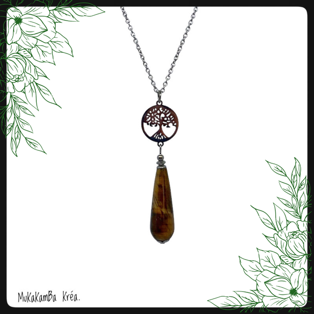 Collier arbre de vie et pierre naturelle