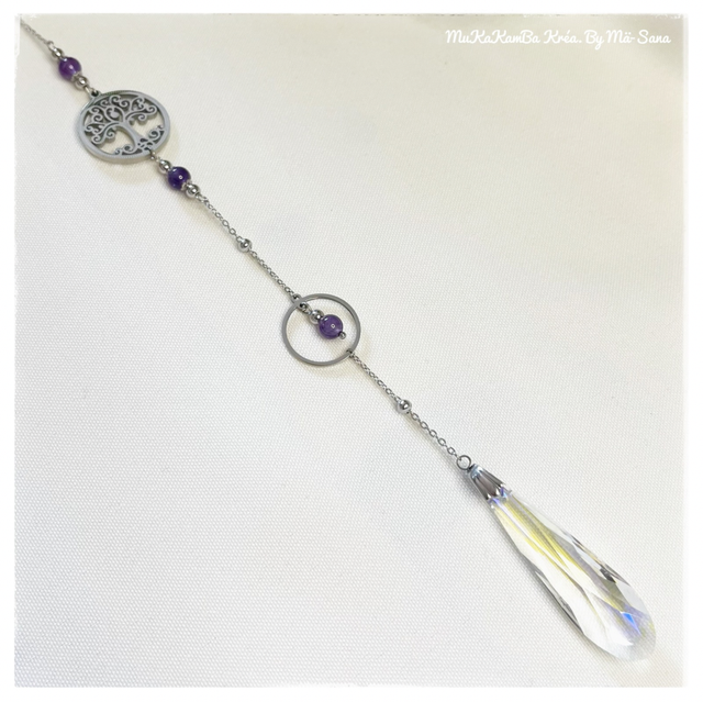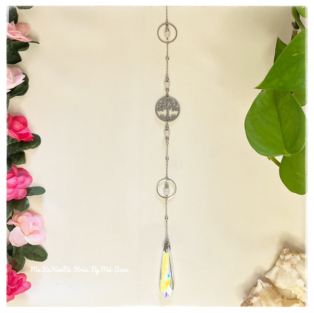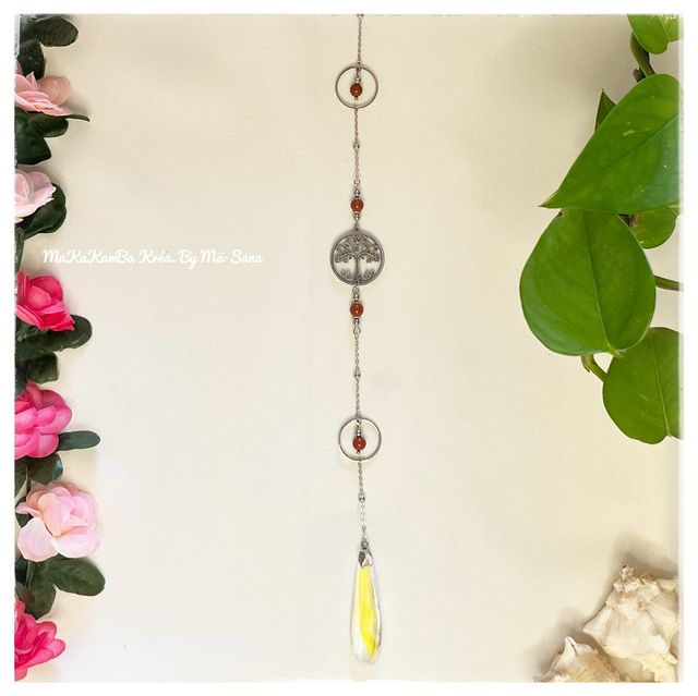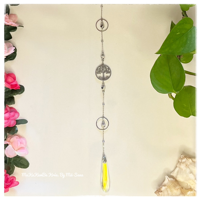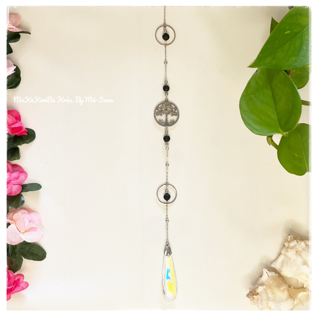 Suspendu à une fenêtre, il capte la lumière pour diffuser reflets et énergies dans ton espace.