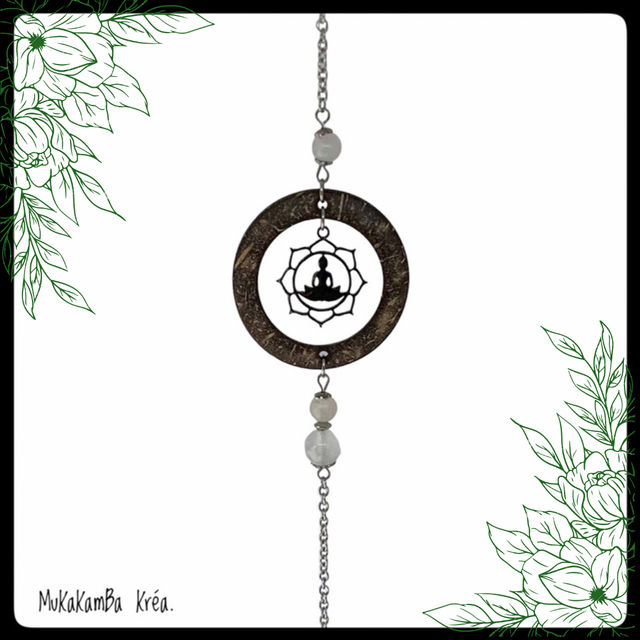 Avec un cercle en noix de coco, un Bouddha au centre et des perles en pierres naturelles