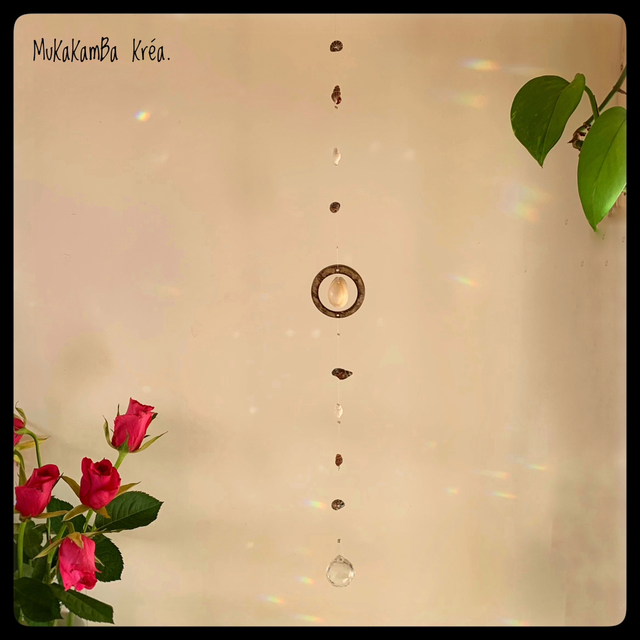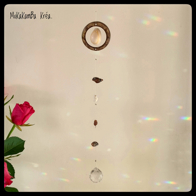 Attrape-soleil en fil de pêche de qualité, des coquillages et un cercle en noix de coco