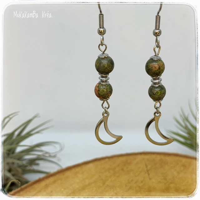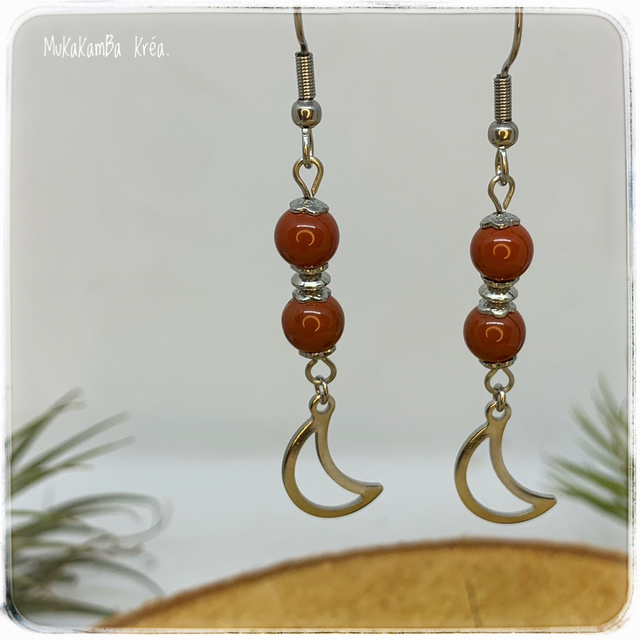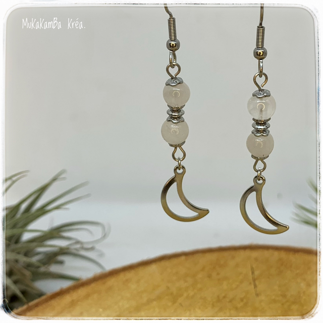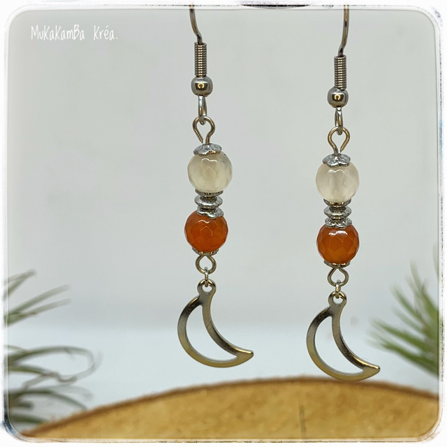 Boucles d’oreilles en acier inoxydable et perles en pierres naturelles